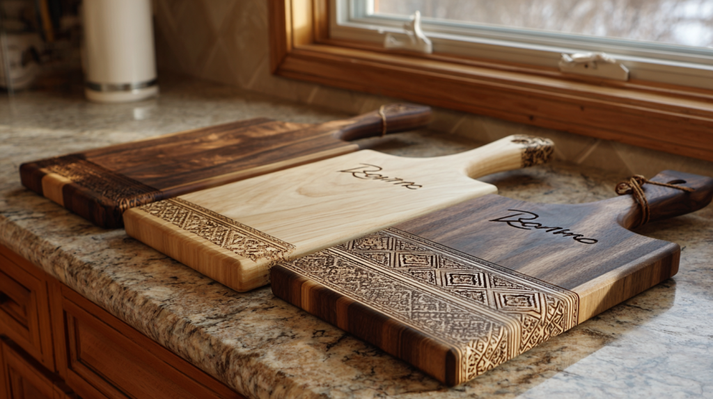 Cutting boards are loved in kitchens because they last long and are handy. Customization options like engravings and special wood patterns make them unique. This makes them very sought after.